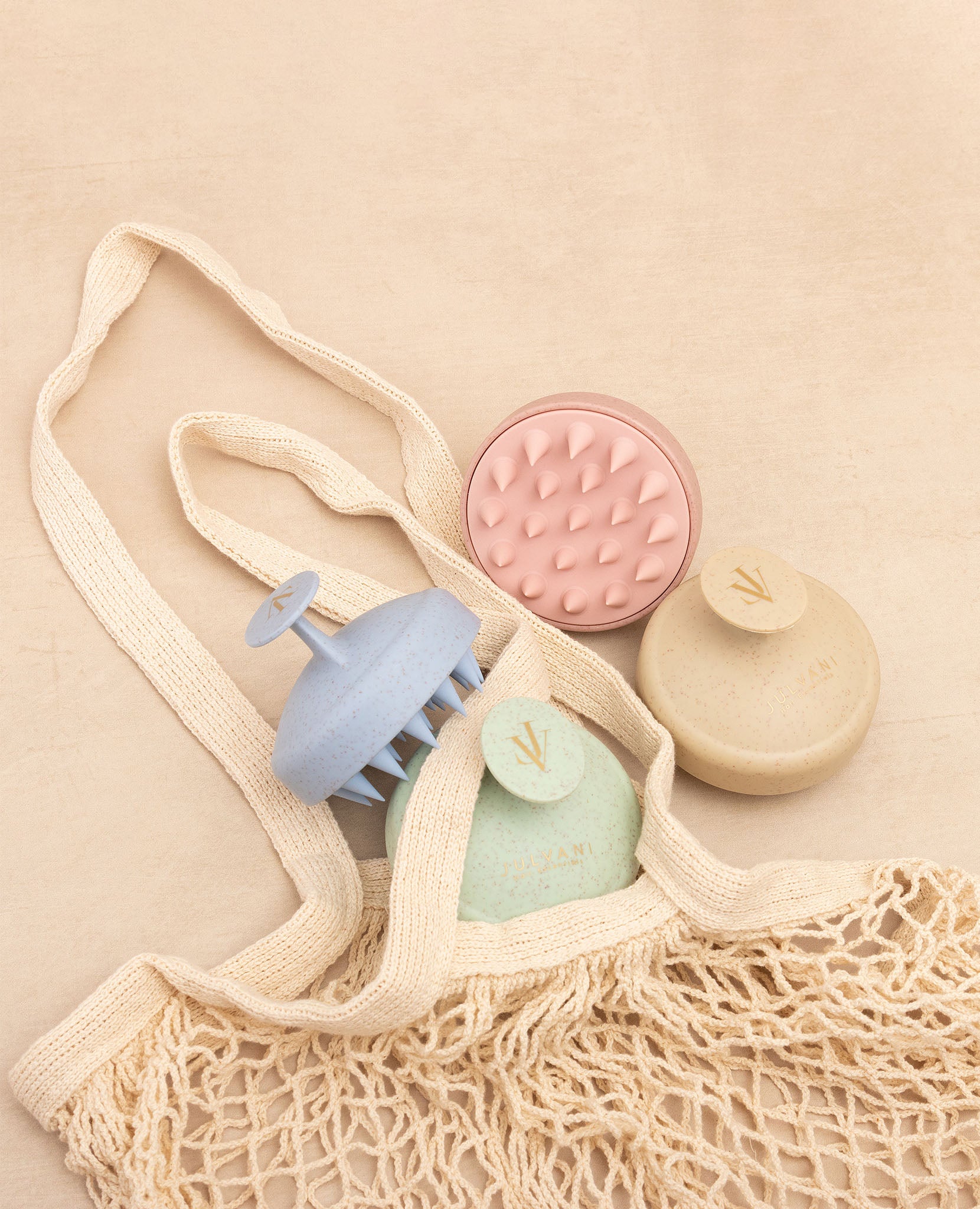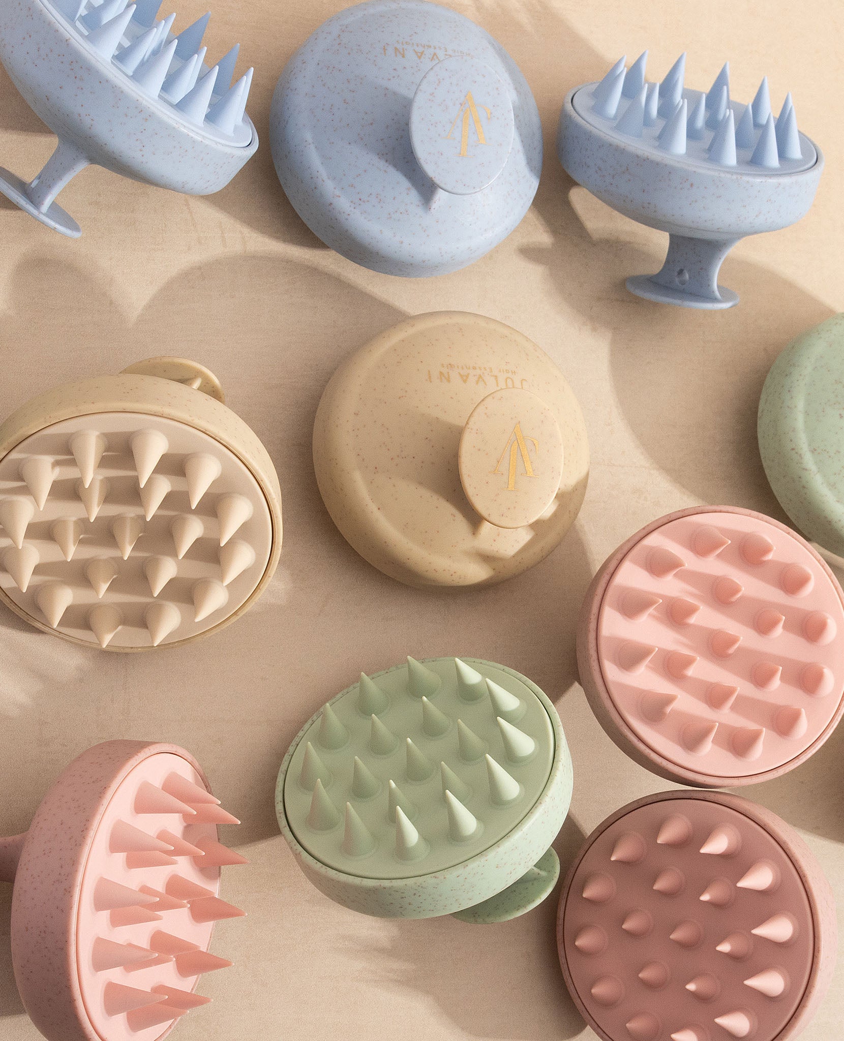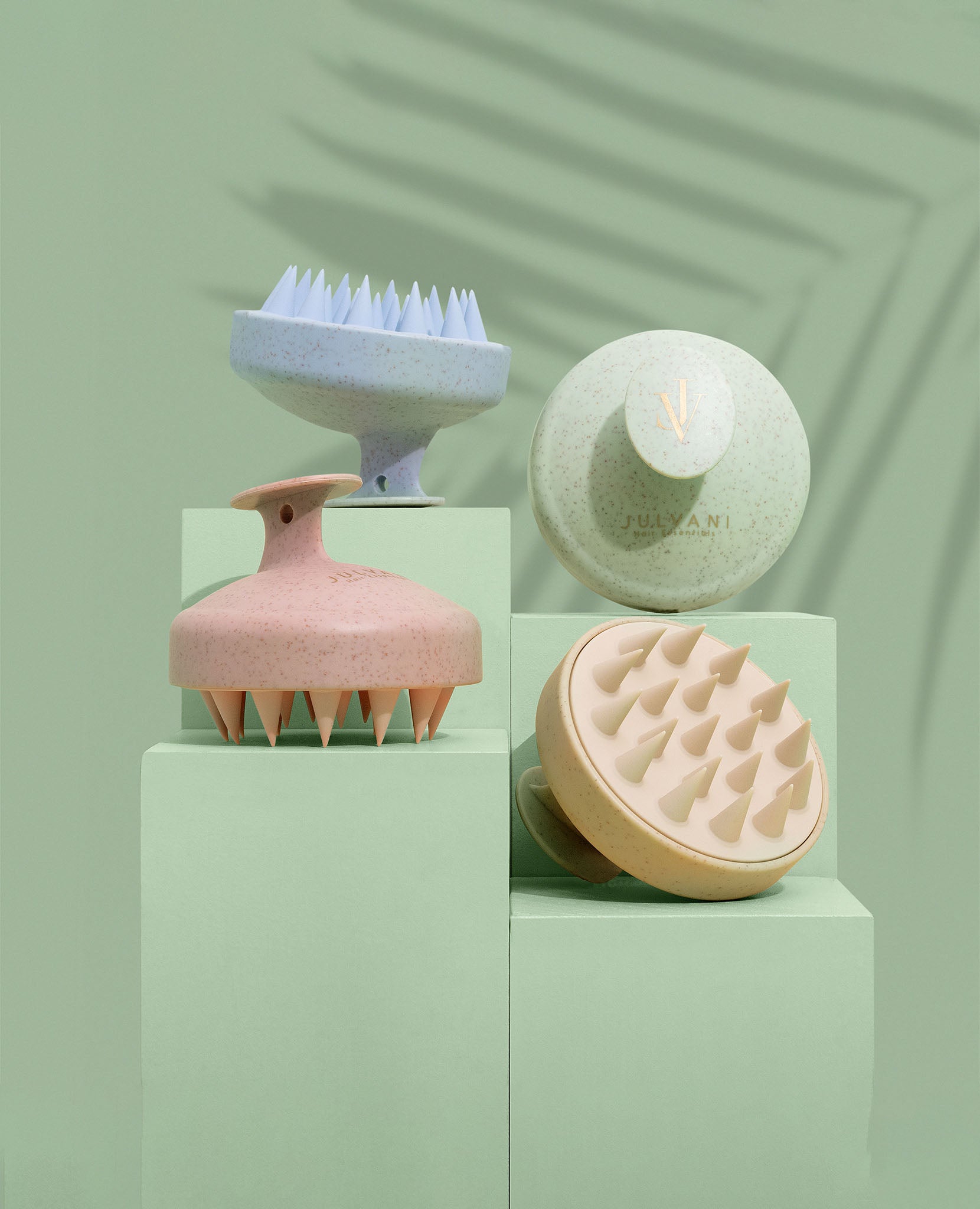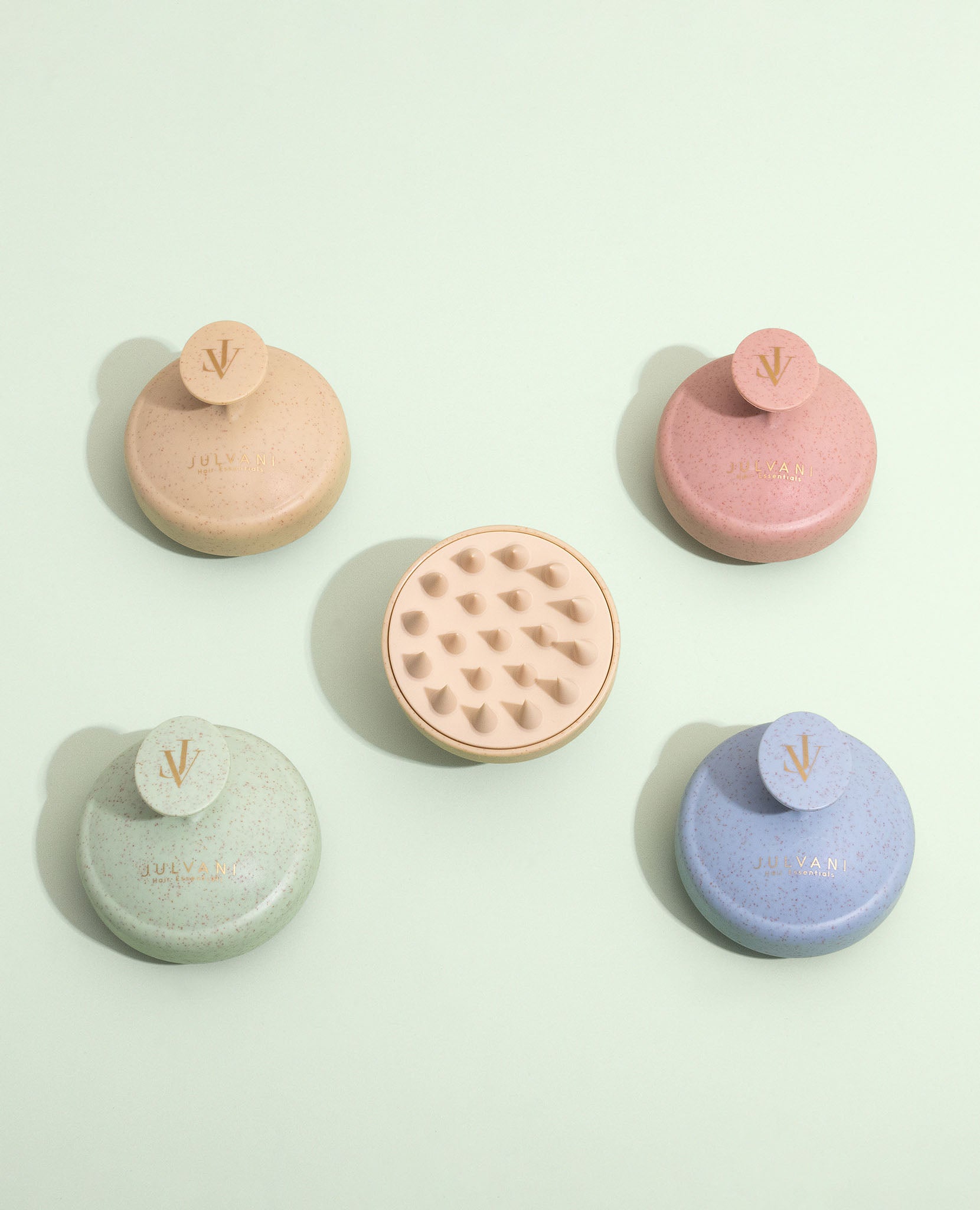 Julvani Scalp massagers are made with a wheat straw base that is 100% biodegradable, and soft, non-toxic silicone bristles that provide great scrubbing action while still being soft enough to not hurt your scalp.